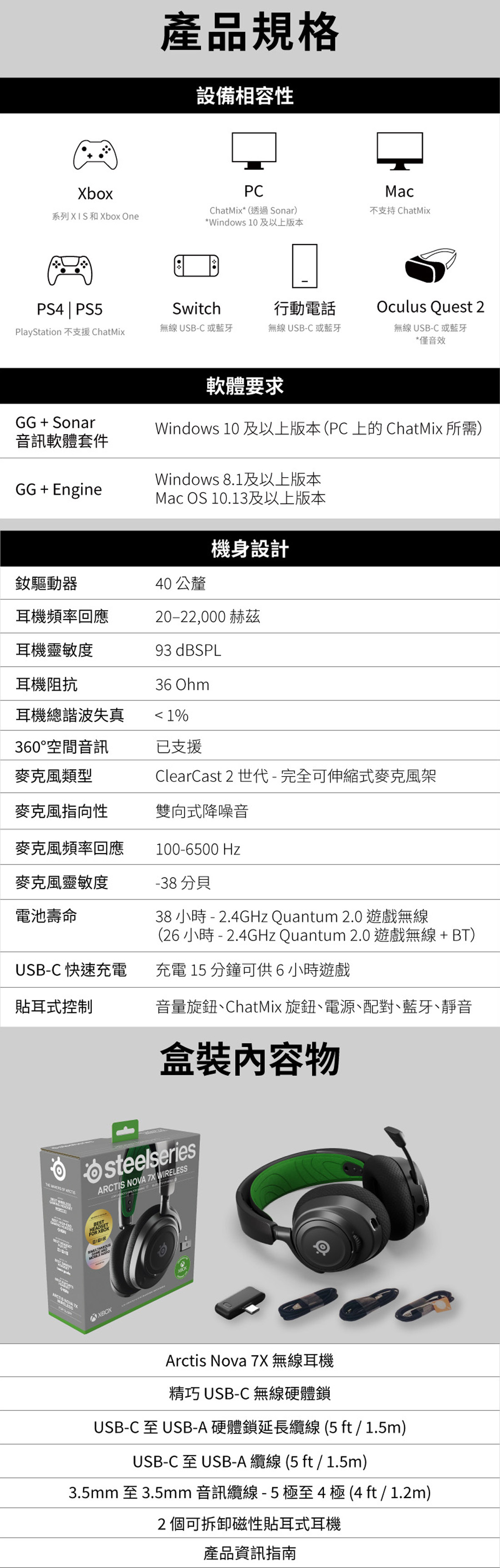 SteelSeries Arctis Nova 7X 無線電競耳機麥克風(白)(活動特惠)