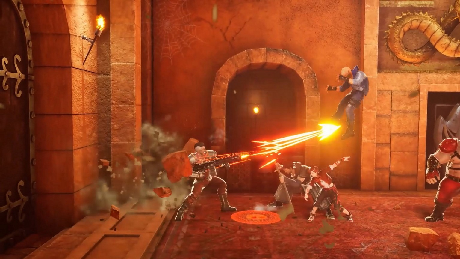 1987 年在電子遊樂場內出現的「橫向捲軸動作遊戲」名作《雙截龍》系列以《雙截龍再臨》再次重生。保留了街機遊戲時代的人物角色原有的魅力,並利用 3D 圖像技術再現。不僅有主角李氏兄弟,歷代與之對抗的強敵們也一起登場。