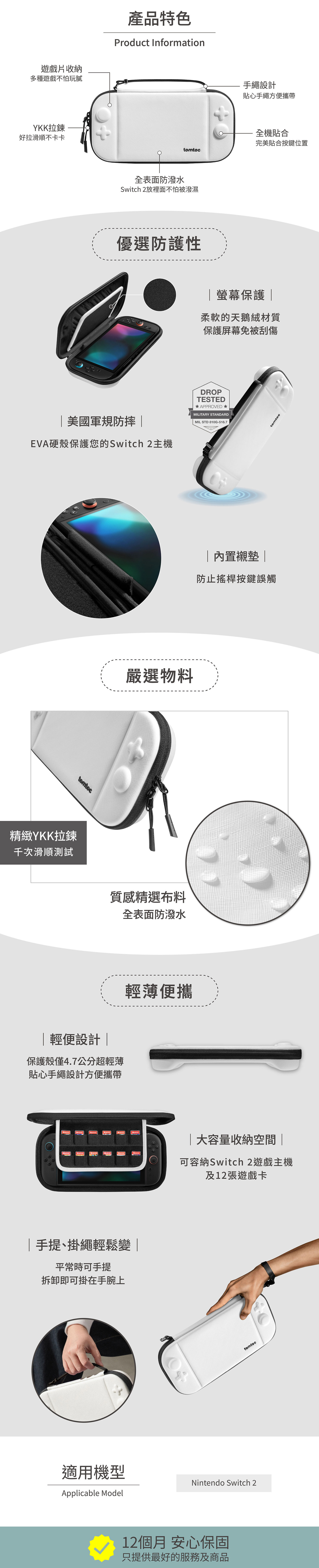 .「Tomtoc 軍規硬殼 Nintendo Switch 2 主機收納包二代」一個。(白。約 29cm x 14.5cm x 4.7cm)
