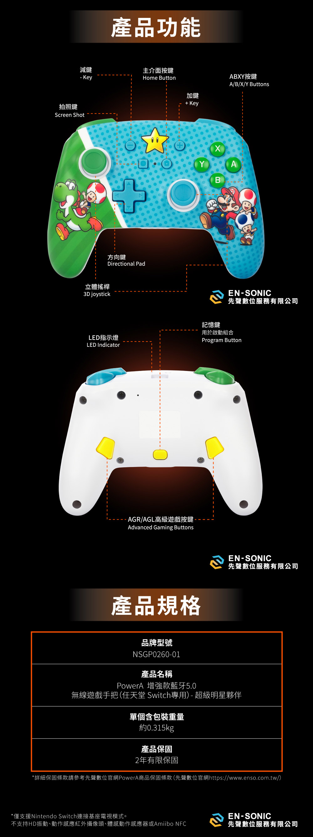 PowerA 增強款 Nintendo Switch 專用無線控制器(超級明星夥伴款)
