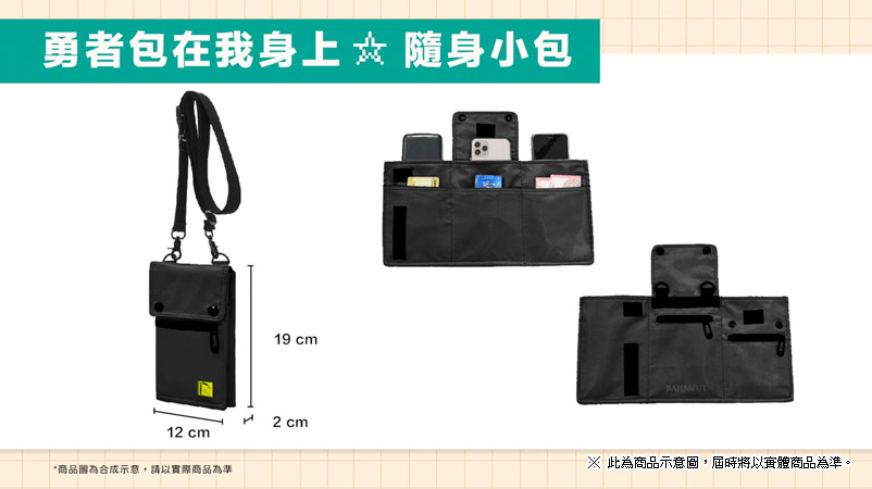 .「巴哈姆特【勇者包在我身上☆隨身小包】」一個。(材質:聚酯纖維。約 19cm x 12cm x 2cm。產地:中國)