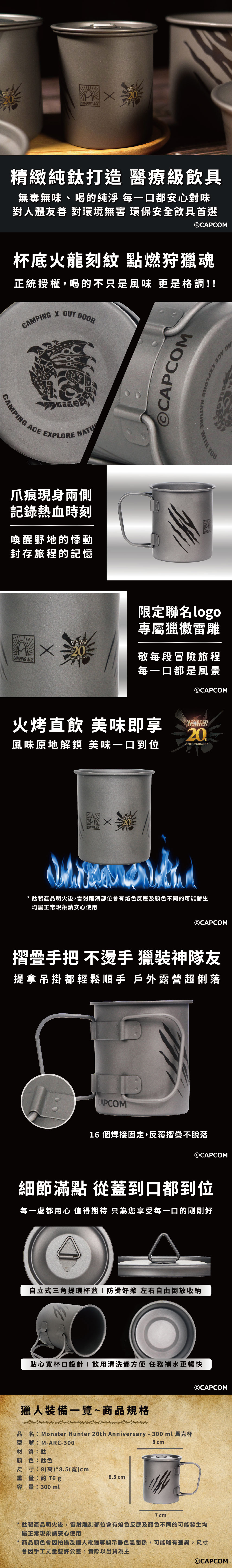 Camping Ace《魔物獵人》20 週年紀念馬克杯 + 叉匙合購組