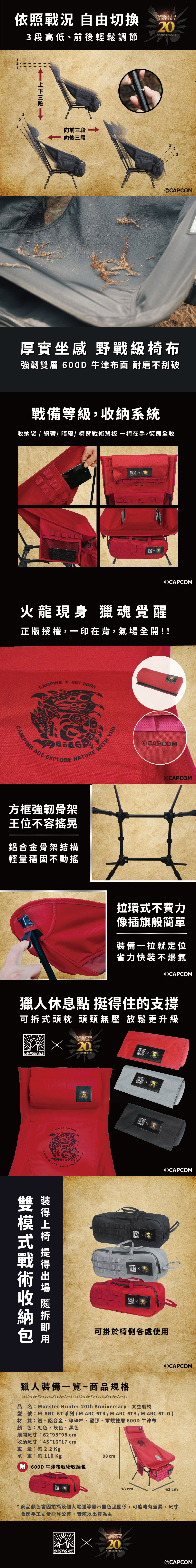 Camping Ace《魔物獵人》20 週年紀念太空躺椅(灰)