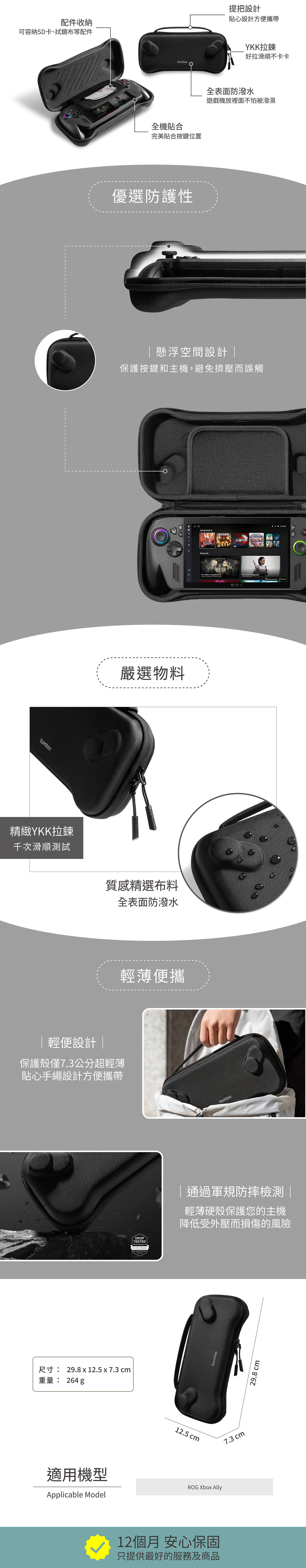.「Tomtoc 軍規硬殼 ROG Xbox Ally 硬殼收納包」一個。(顏色:黑。約 29.8cm x 12.5cm x 7.3cm)
